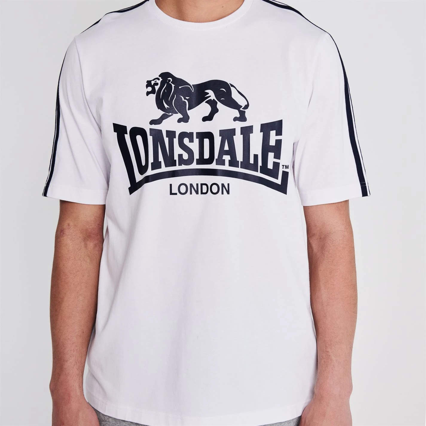 This Lonsdale Large Logo T Shirt is crafted with short sleeves and a crew neck for a classic look. It is a lightweight construction featuring stripe detail to each sleeve. This t shirt is designed with a signature logo and is complete with Lonsdale branding.